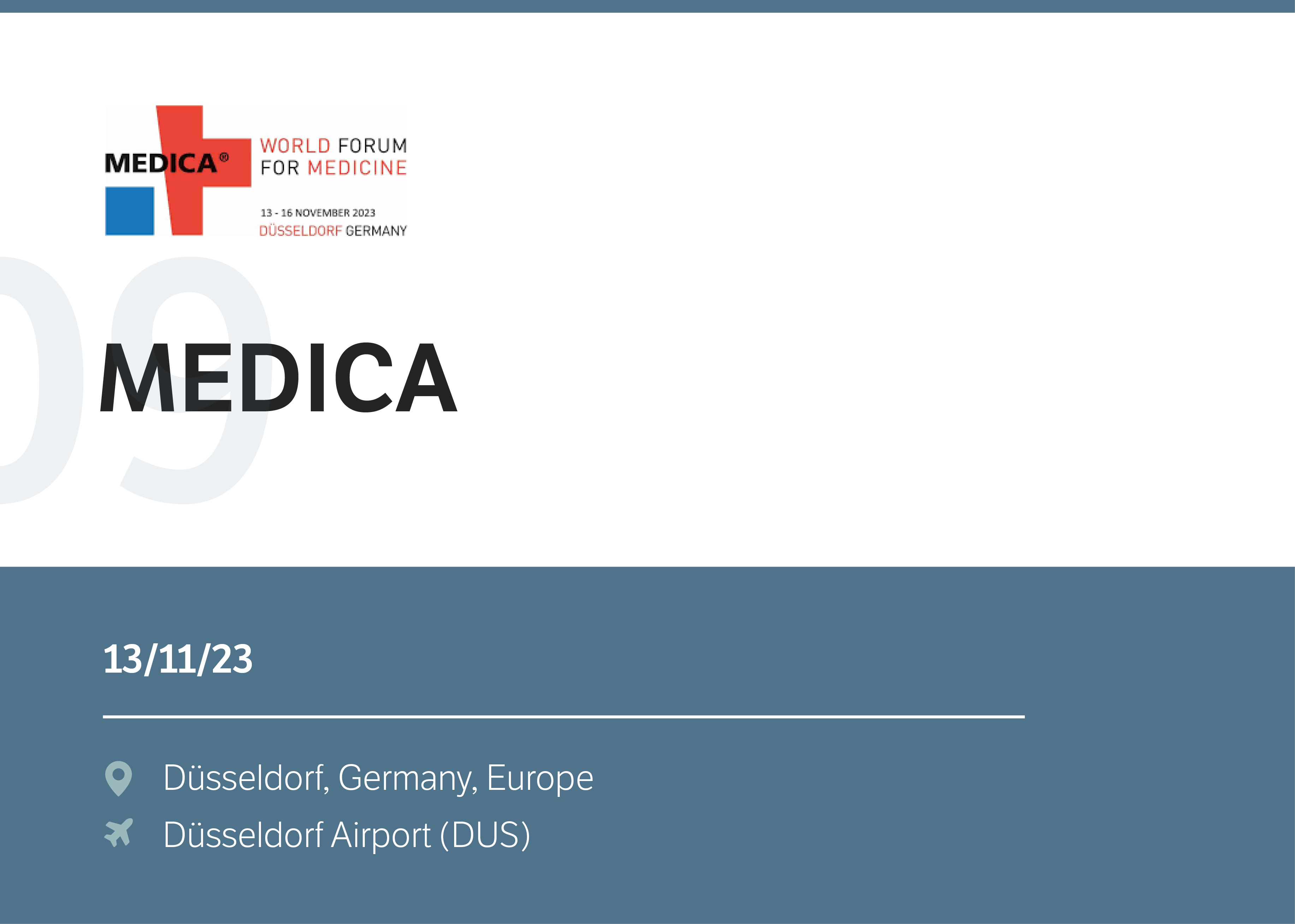 Event Description: With over 4,500 exhibitors from 66 countries and more than 81,000 visitors from all over the world, MEDICA in Düsseldorf is one of the largest medical B2B trade fairs in the world. A wide range of innovative products and services from the fields of medical imaging, laboratory technology, diagnostics, health IT, mobile health as well as physiotherapy/orthopaedic technology and medical consumables are presented here. The extensive programme of first-class forums, conferences and special shows provides opportunities for interesting presentations and discussions with experts and politicians and also includes pitches of new products and award ceremonies.